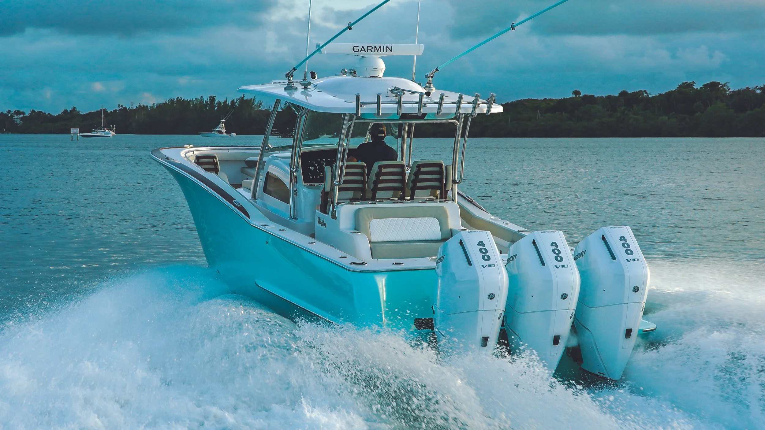 Luxury sport yachting is reinvigorated aboard the versatile 39 LS from Tiara Yachts. Forward, wrap-around seating converts to a large sunpad, while aft, owners get their choice of rotating lounge seating and storage or an option for adventure with a module focused on fishing. A portside terrace expands the cockpit and allows for further enjoyment of the water while a starboard side boarding door allows for passageway. Paired with twin Mercury® 600-horsepower V12 Verado engines, joystick piloting and integrated Garmin® Marine navigation systems, Captains and guests will experience thrilling power and performance aboard the outboard-powered 39 LS.