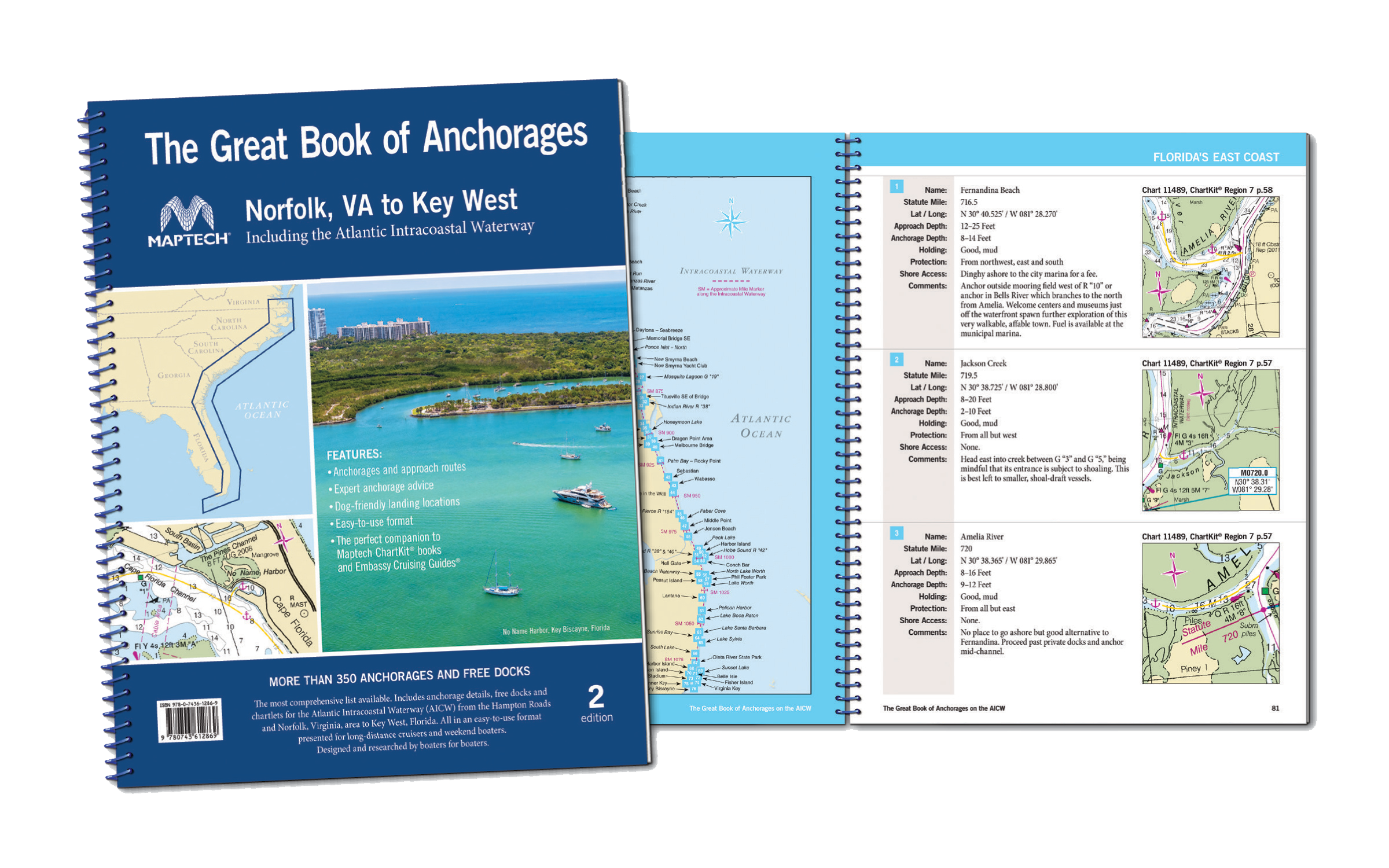 Designed and researched by experienced navigators, The Great Book of Anchorages is a comprehensive navigation tool that covers Norfolk, VA to Key West, including the Atlantic Intracoastal Waterway. Made by Maptech®, this guide includes overview maps for anchorage areas in each state, GPS coordinates for easy reference, easy-to-follow approach routes, details on bottom types, and suggestions for shore access and dog walking.