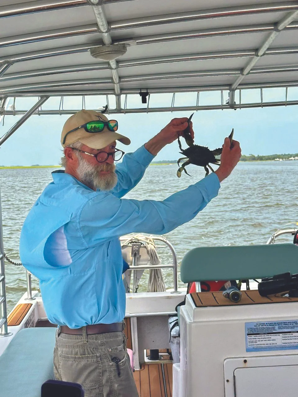 Capt. Albo showing off a blue crab during Coastal Safari.